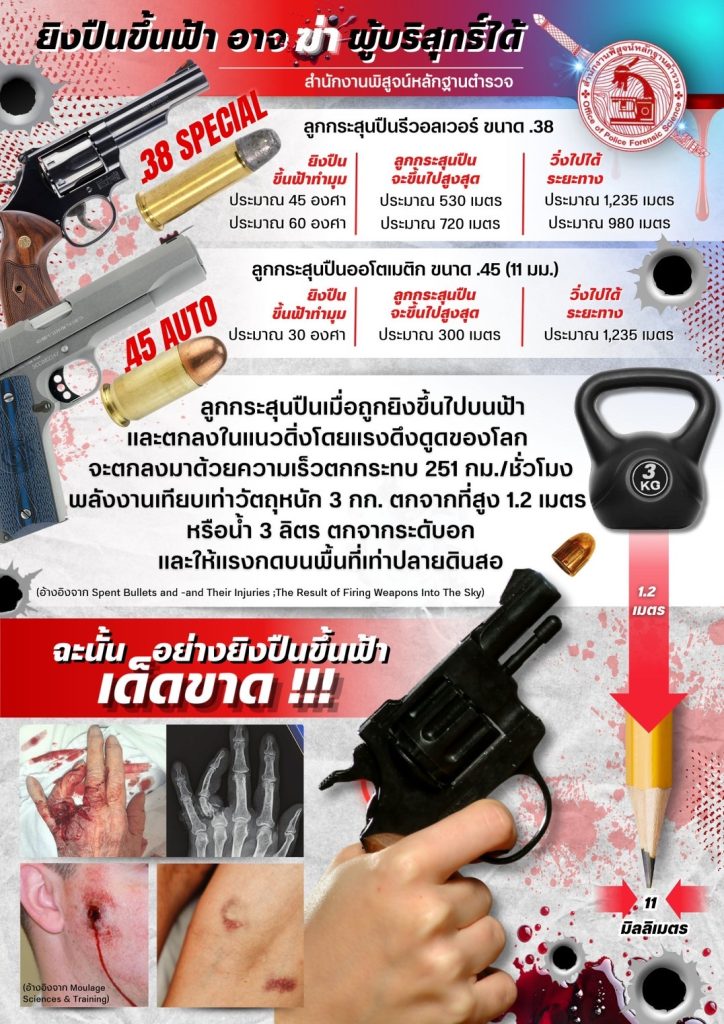 สำนักงานพิสูจน์หลักฐานตำรวจประชาสัมพันธ์ให้ทราบและรับรู้เกี่ยวกับอันตรายจากการยิงปืนขึ้นฟ้าและความผิดจากการยิงอาวุธปืนขึ้นฟ้าในช่วงเทศกาลปีใหม่